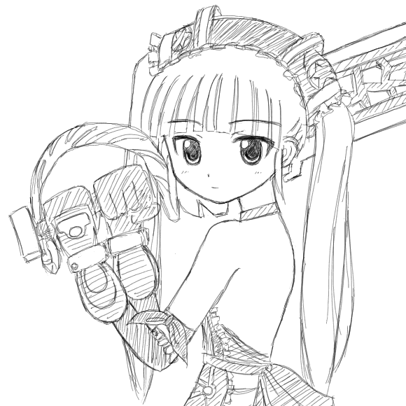 以前に描いた、らき☆すたの絵を塗り直したいと思っていた。絵チャで描いた絵のスクリーンショットなので、レイヤ情報がなくなっている。単色で塗ってあれば楽に変更できるけれど、そういうわけでもなくて、意外に大変だ。